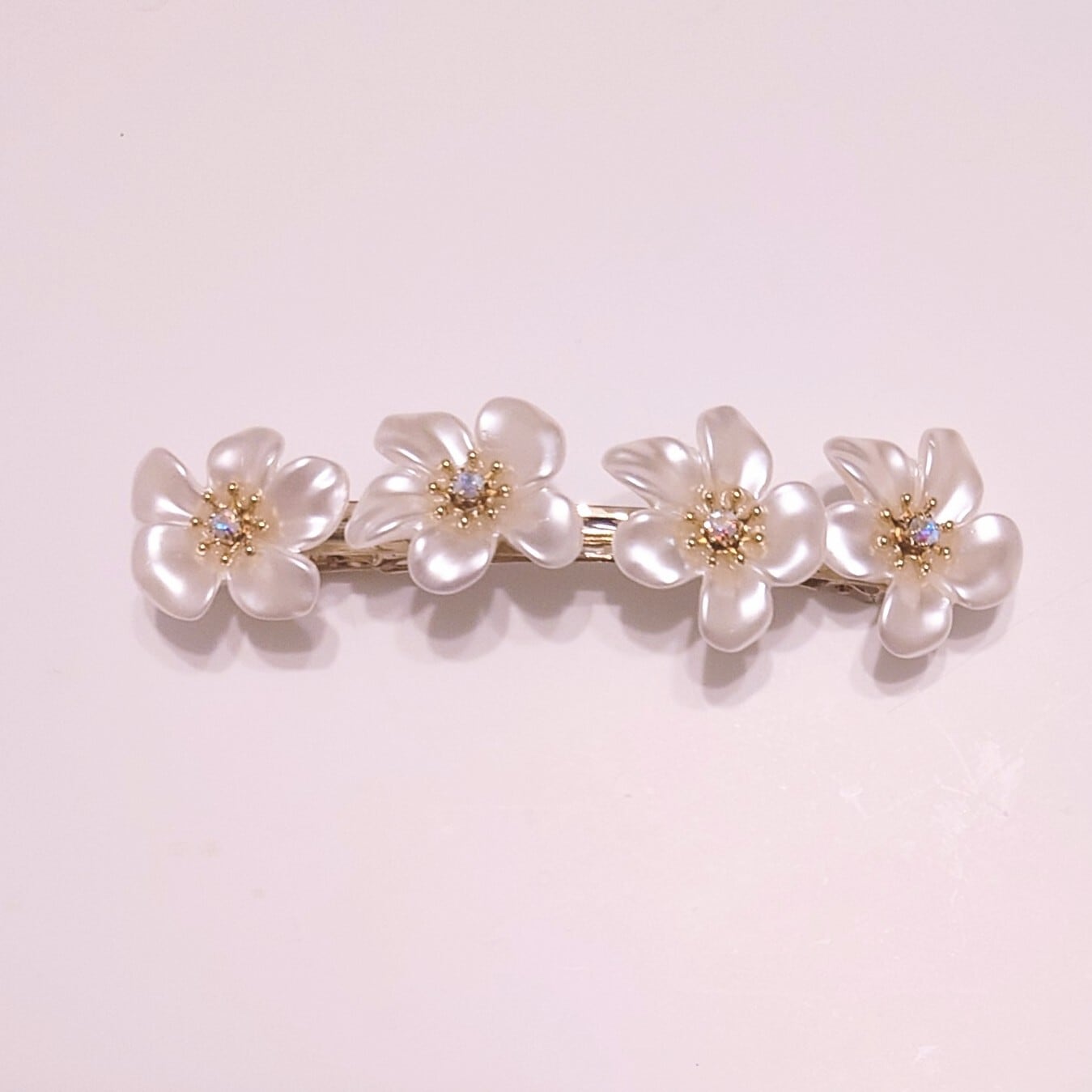 髪を上品フェミニンな印象に導いてくれるアクリルフラワーを使用したバレッタです。
